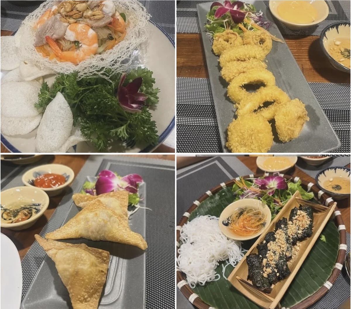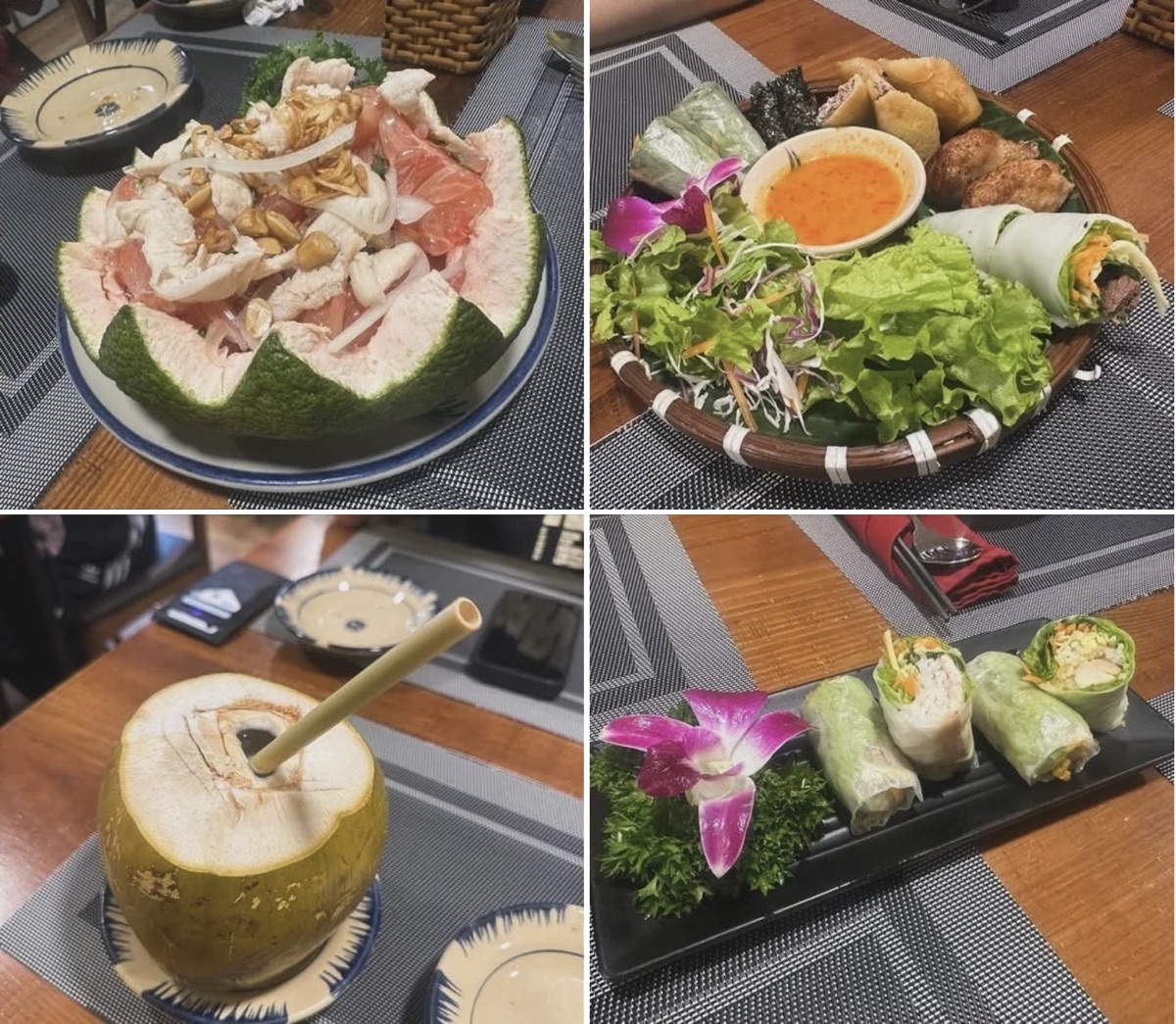 Gỏi bưởi, nem rán, gỏi cuốn, nước dừa tươi cũng xuất hiện trong thực đơn của nữ ca sĩ.