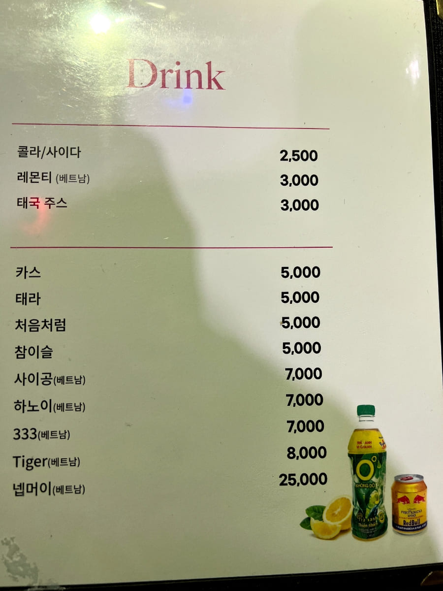 우리는 차돌생쌀국수와 소고기볶음밥, 그리고 월남쌈을 주문했어요.